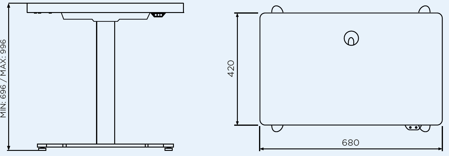 | Dimenzije mizne plošče | 680 mm (Š) x 420 mm (G) |