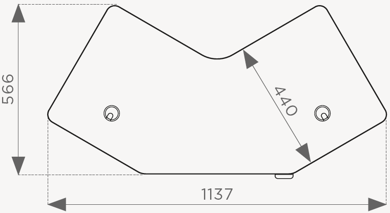 | Dimenzije mizne plošče oblike-V | 1136 x 566 mm |