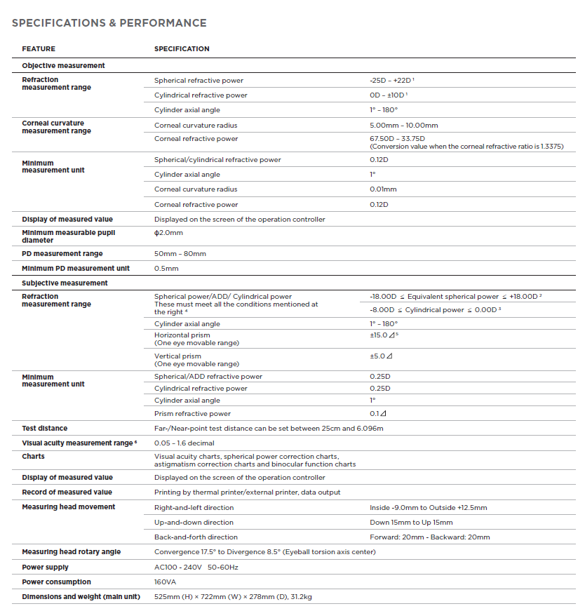 - Popolnoma opremljen avtomatski foropter za izvajanje meritev z binokularnimi subjektivnimi testi