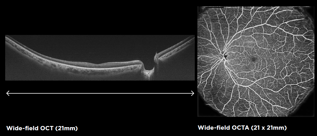 Omogoča več kliničnega vpogleda z wide-field OCT in OCTA slikanjem, kar je zelo uporabno pri številnih očesnih boleznih.