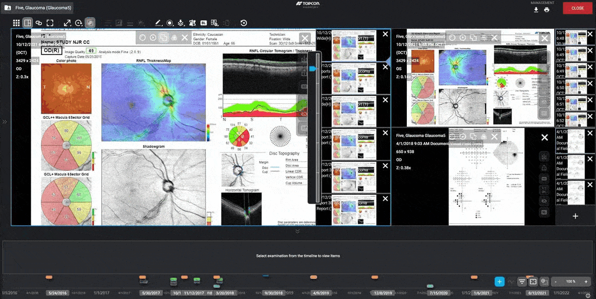 Topcon Harmony ponuja vmesnik, ki skrajša čas, porabljen za upravljanje podatkov o preiskavah pacientov, tako da očesnim strokovnjakom omogoči dostop do podatkov o pacientih z manj kliki. Pridobite nadzor nad vsakim instrumentom v vaši ordinaciji z brezhibno integracijo EMR (vaš lokalni softver). Intuitivna zasnova programske opreme organizira vse podatke o pregledu na enem samem zaslonu, kar izboljša učinkovitost prakse.