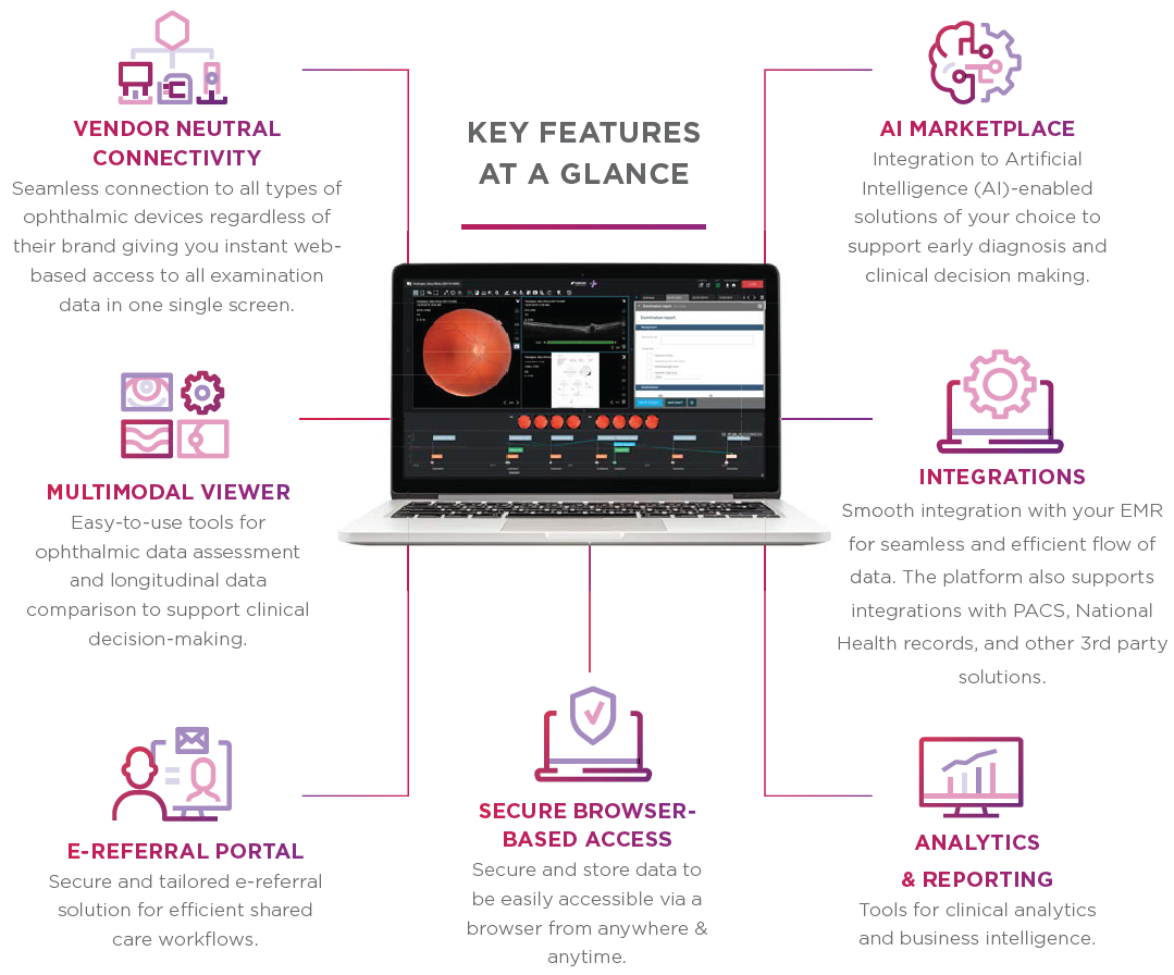 Harmony zagotavlja popolno sliko pacientovega zdravja oči na enem samem zaslonu. Klinične poglede je mogoče preprosto prilagoditi glede na entiteto bolezni, tako da vidite le informacije, ki so potrebne za postavitev diagnoze ali odločitve o zdravljenju.