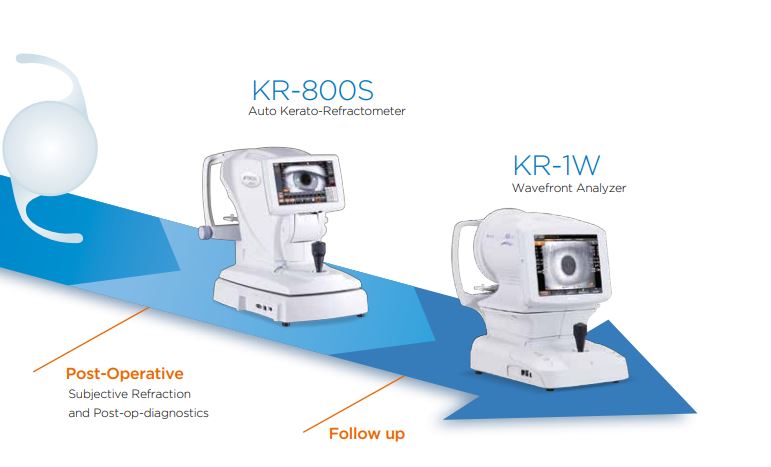 KR-800S lahko zagotovi informacije o ostrini vida pred in po operaciji katarakte, da se oceni izid operacije sive mrene. KR-800S lahko simulira uporabo vrhunskih IOL, kot so torične IOL ali multifokalne IOL. Pacient lahko izkusi vpliv vrhunskih IOL na svojo ostrino vida. Zaradi tega je KR-800S popoln instrument poleg Topconovega biometra ALADDIN.
