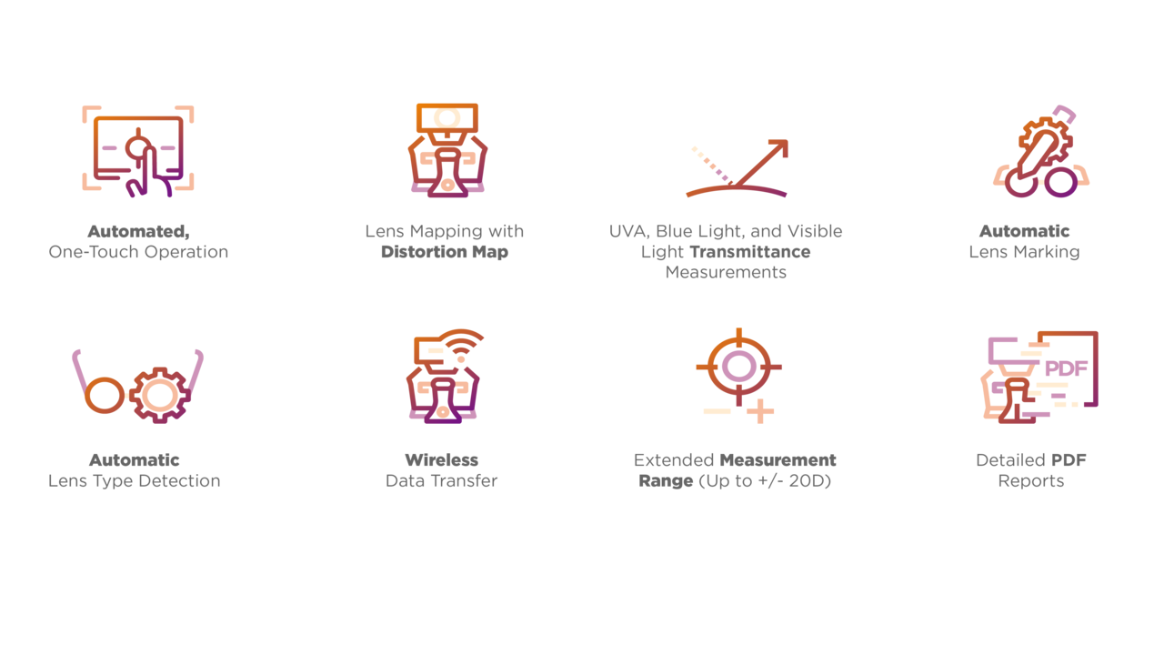 SOLOS Lite je popolnoma avtomatiziran dioptometer z UV-A spektrometrom, ki zaznava, meri in označuje enožariščne, progresivne in druge multifokalne leče, nameščene v okvirju za očala ali kot neobdelane leče.
