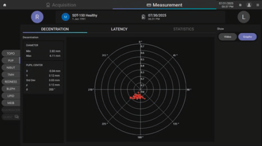 Za prileganje kontaktnih leč in ocenjevanje očesne površine – združuje roženično topografijo, analizo solznega filma, slikanje meibomskih žlez ter pupilometrijo, kar omogoča izbiro optimalne leče in udobno nošenje.